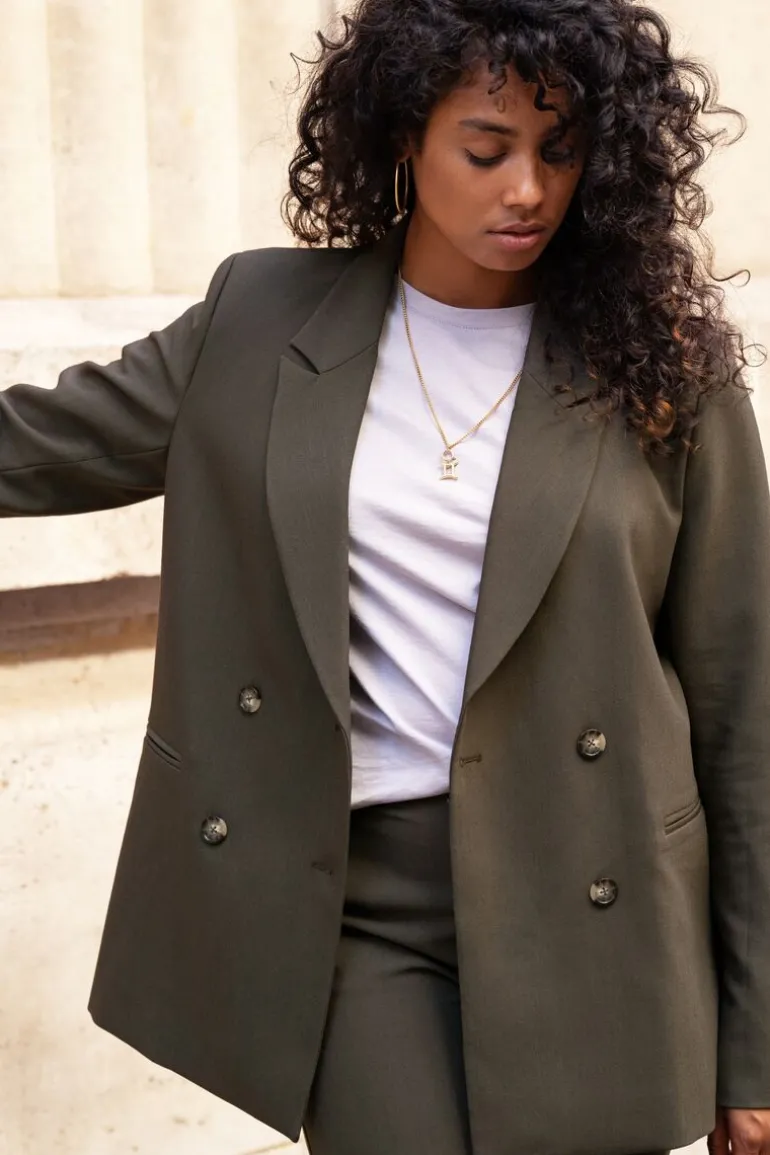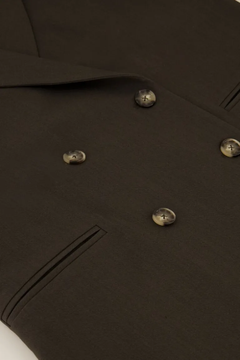 - De blazer is voorzien van schoudervulling