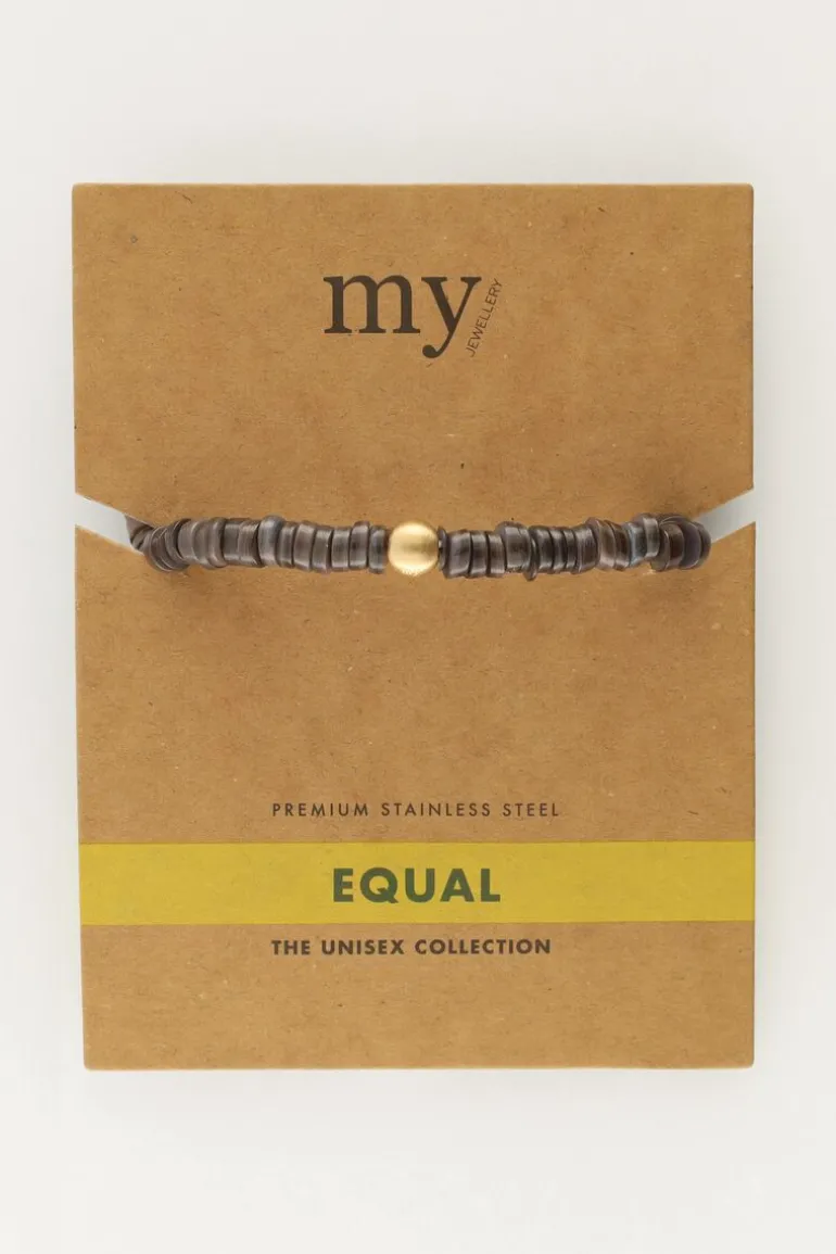 Equal Armband Met Zwarte Platte Kralen