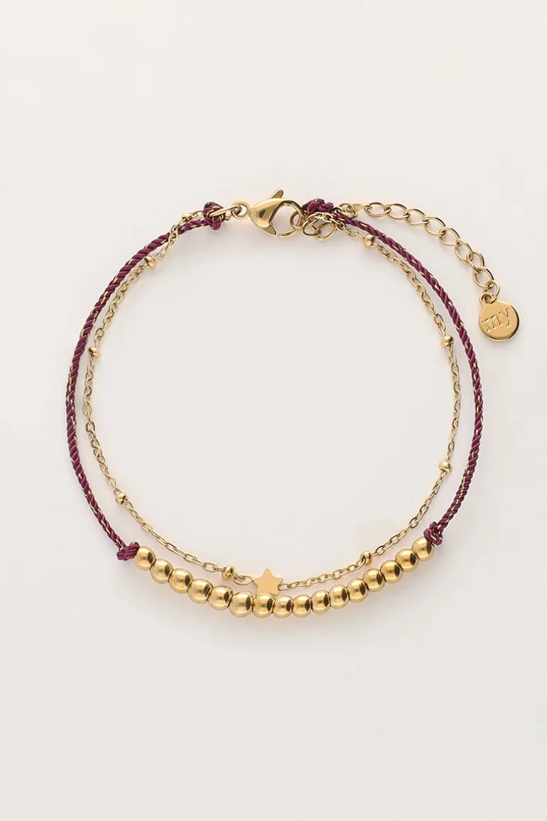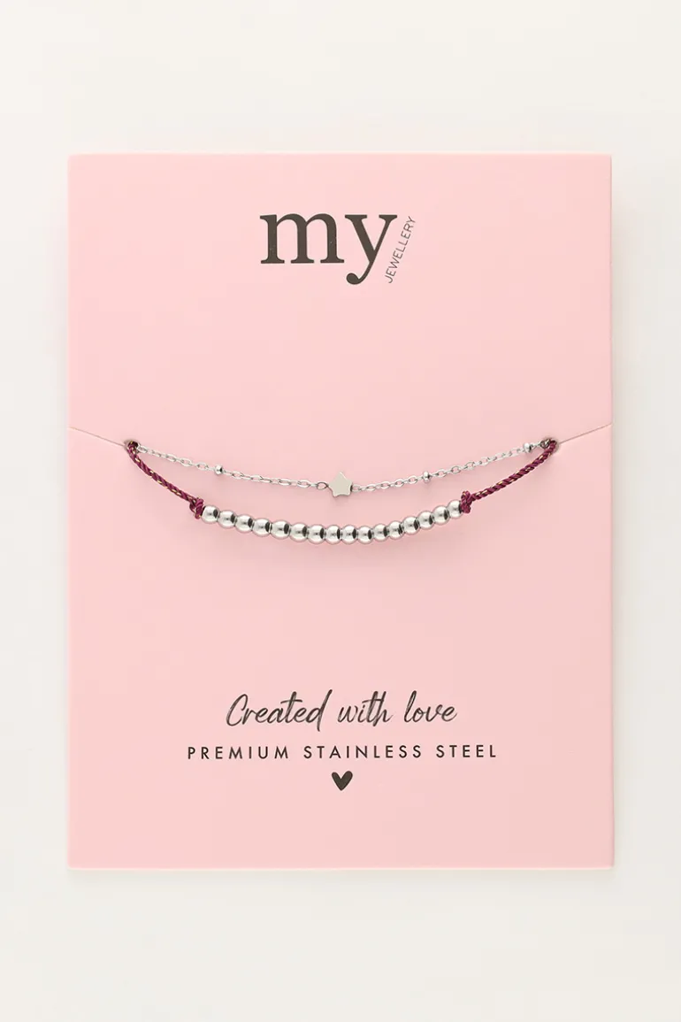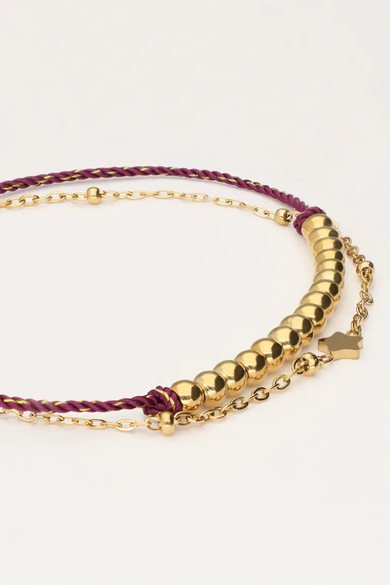 Minimalistische Dubbele Armband Met Paars Koord En Kralen