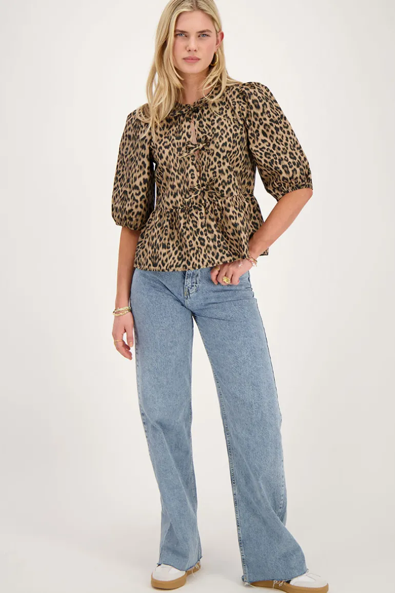 - Het studiomodel is 174 cm lang en draagt maat XS