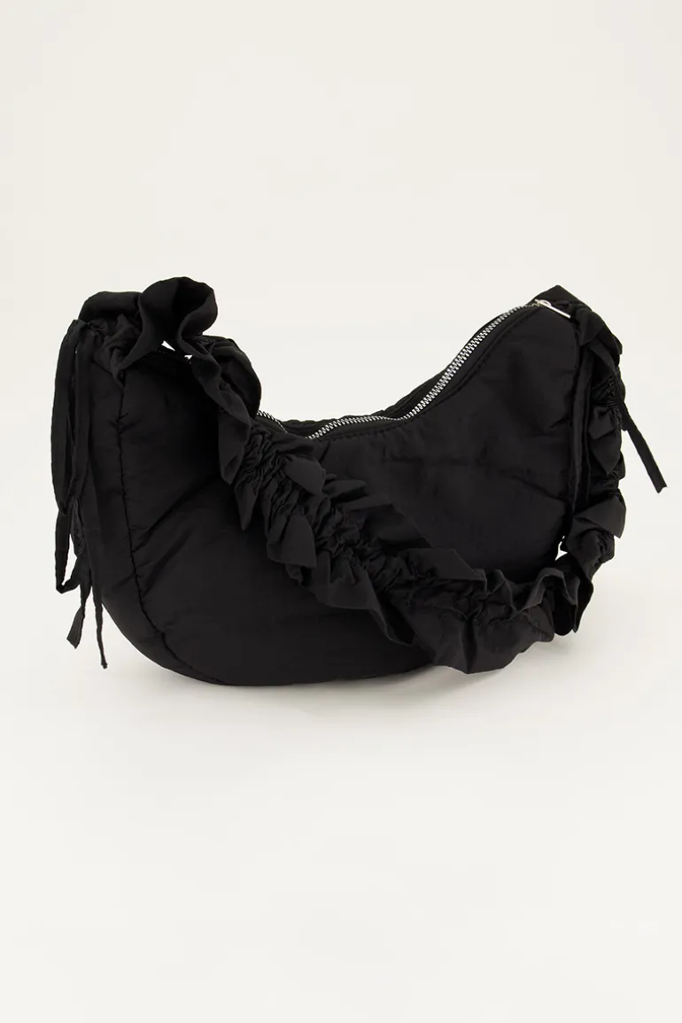 Zwarte Crossbody Tas Met Ruffles