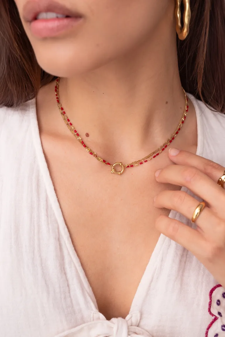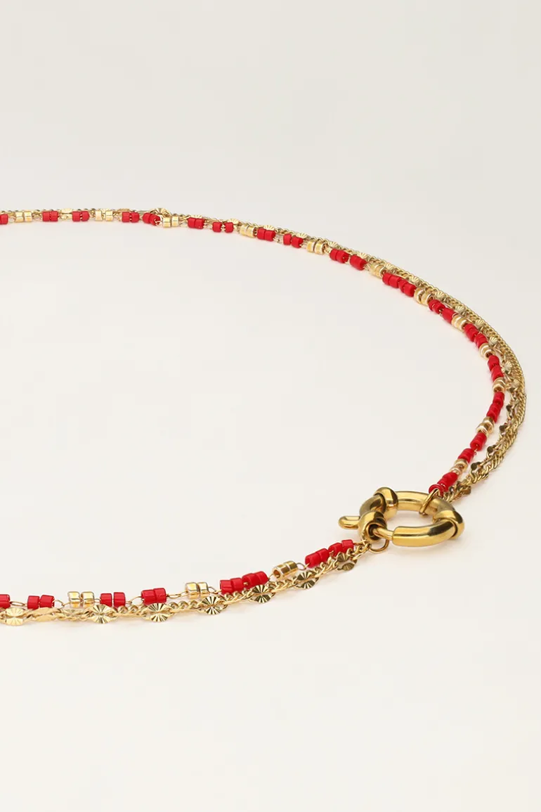 Be the first to review “Driedubbele Ketting Met Rode Kralen” Reactie annuleren