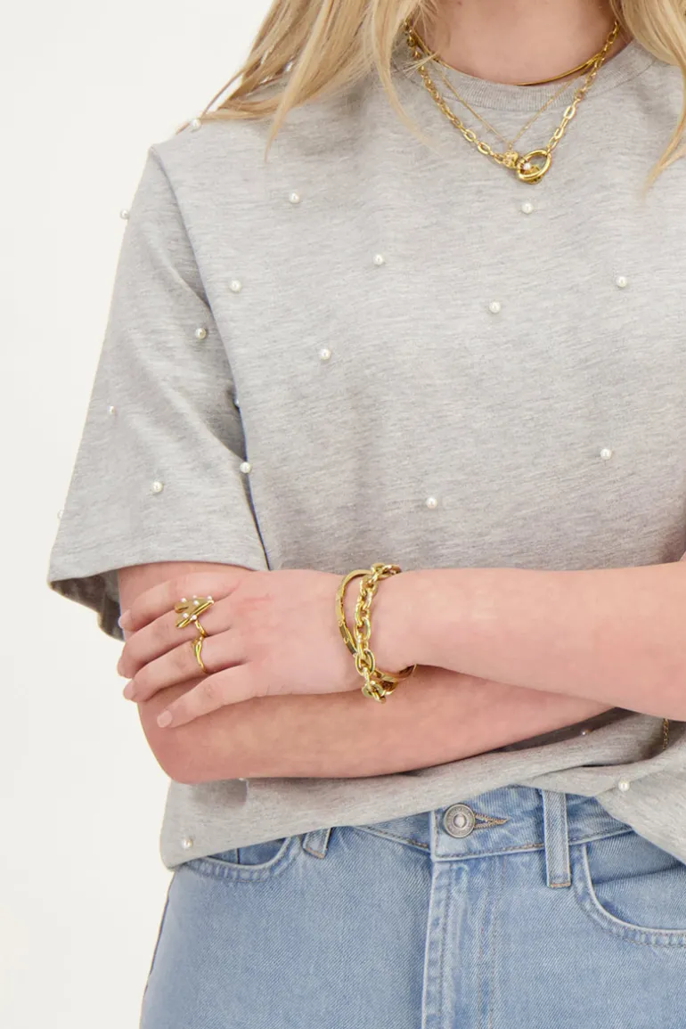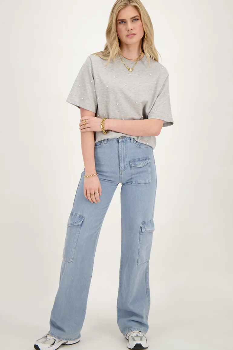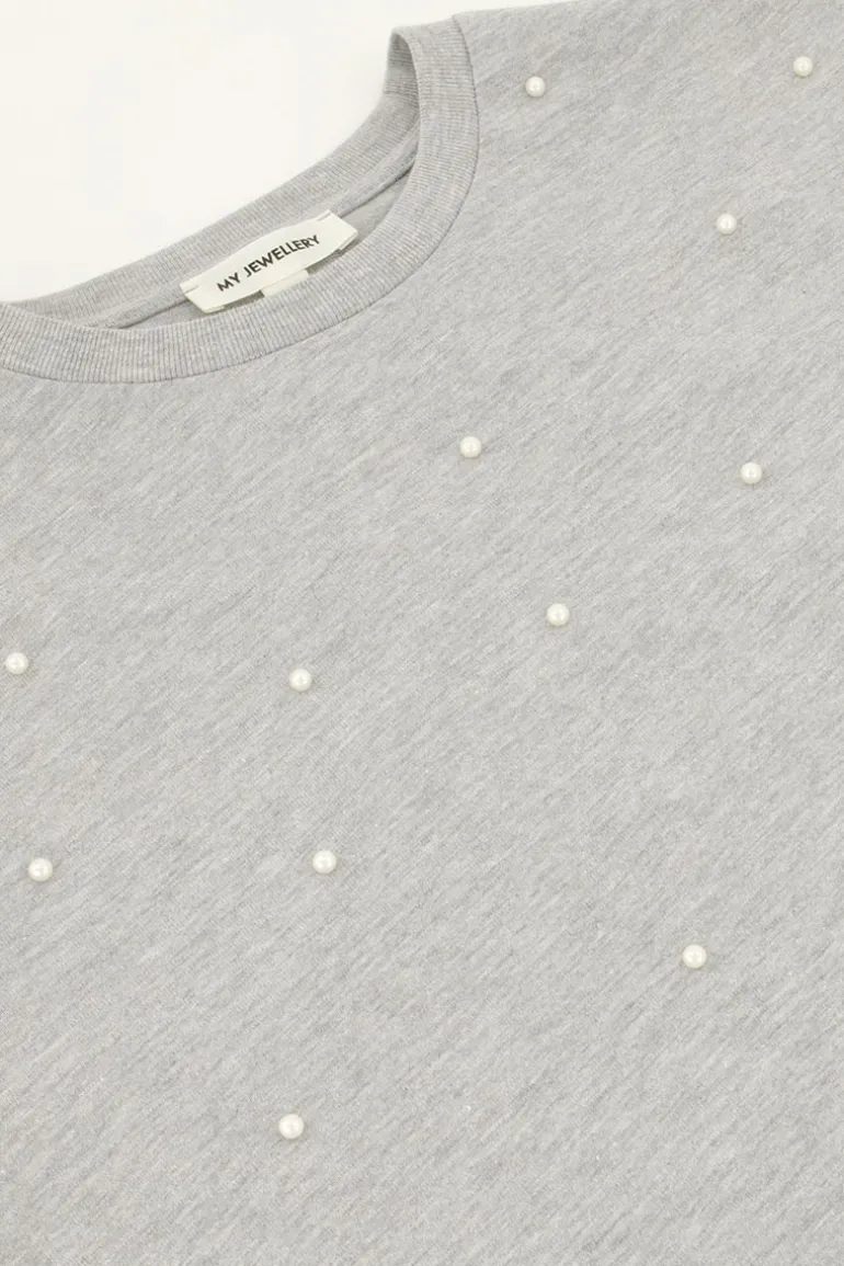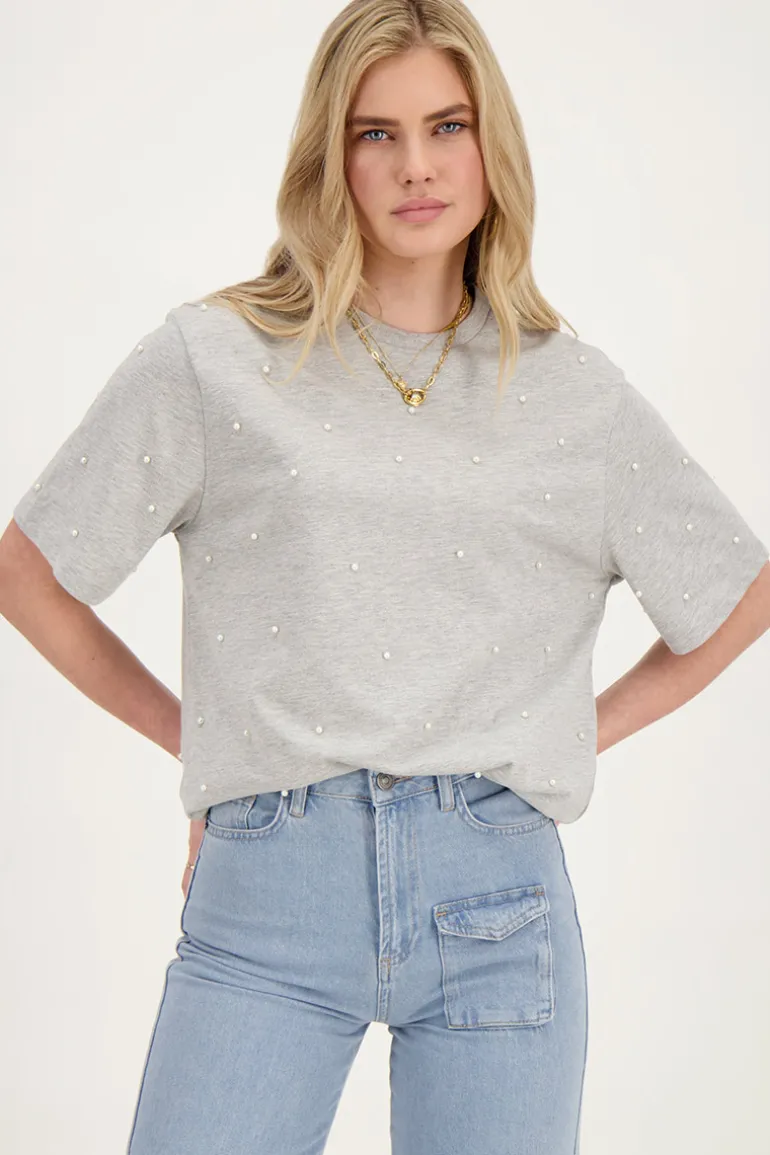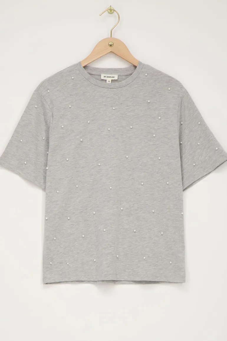 Grijs T-shirt Met Parels